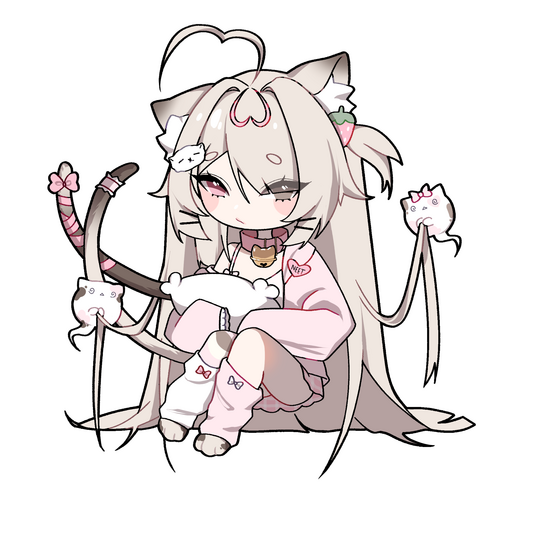 Zivi is a shy, sleepy, NEET catgirl who likes to stay inside n play games or draw. She is very reclusive and anxious but she'll warm up to you, just make sure to give her lots of headpats!! She gets fatigued easily and takes a nap everyday, catgirls need their catnaps!There are two cat ghosts who haunt zivi but she isn't aware of them. We do not know their origin, why they haunt her, or their names.